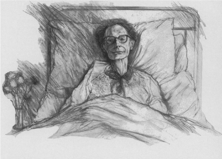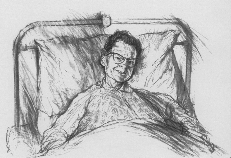 The above drawings by an unknown artist demonstrate the change in the expression of a patient. Dr. Saunders explains, “Treatment is such …[at the hospice] that, although near death, these patients–sketched from photographs taken just a few days before they died–were free from anxiety and pain; their faces mirror their peace in their last stages of life.” (36).